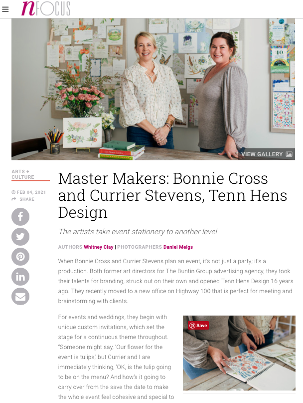 Hens in NFocus magazine February 9, 2021 We are so honored to be in this months NFocus feature. Hope you will pick up a copy in Nashville or check it out online.