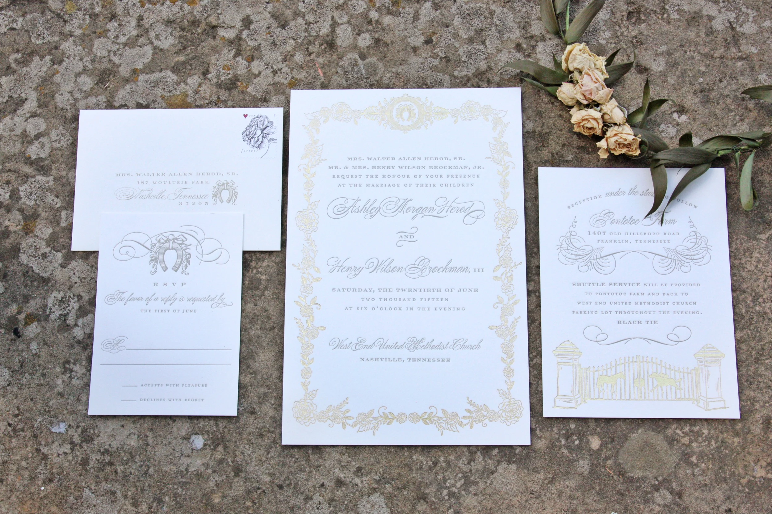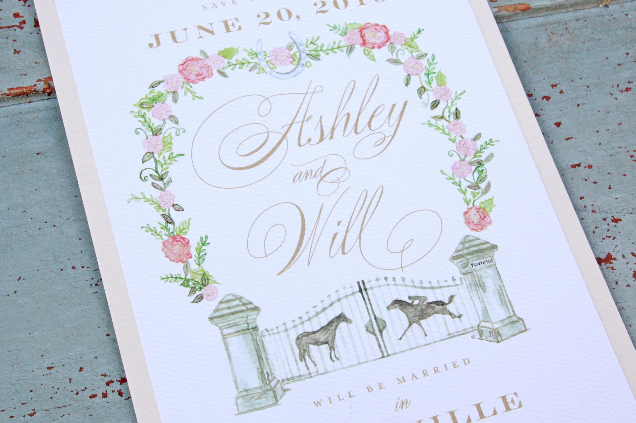 Full invitation suite with custom illustrations and calligraphy by Val Cole.